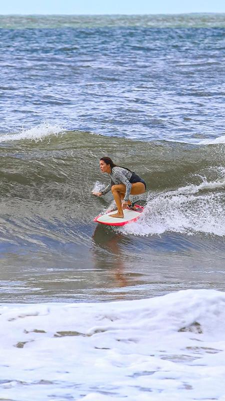 Após 50 dias, surfista mordida por tubarão em Noronha retorna ao mar